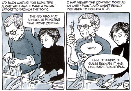 Most recently was Allison Bechdel's "Fun Home", a 'tragicomic' biographic tale dealing with her dad's death. It is very odd and in some ways completely relatible. A very quick and easy read. It is super-rare that I am emotionally moved reading anything, let alone a graphic novel. After reading "Fun Home" I couldn't possibly imagine this story being anywhere near this poignant in 'plain-ole text'. True its used for women studies' classes in college, but I'd be interesting to see how text like this would be adapted to a high school curiculum.